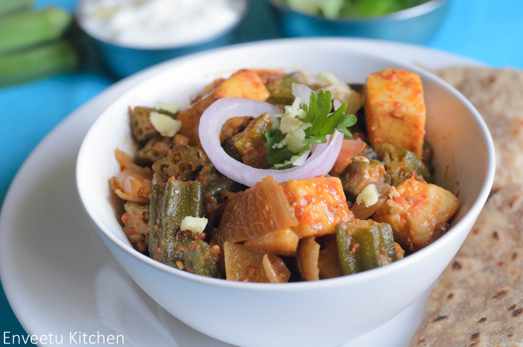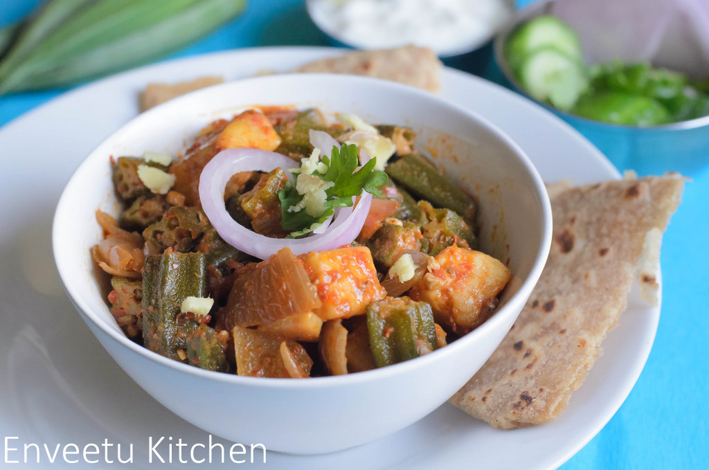 Paneer is my all time favorite and luckily even my hubby too likes it. I make it alteast once in two weeks and now since my hubby is taking Roti for lunch, it appears in our lunch menu often. Bored of trying it with usual capsicums and mixed veggies, i tried it with Bhindi/okra, though i made it with a little hesitation, but to my surprise it turned out great.