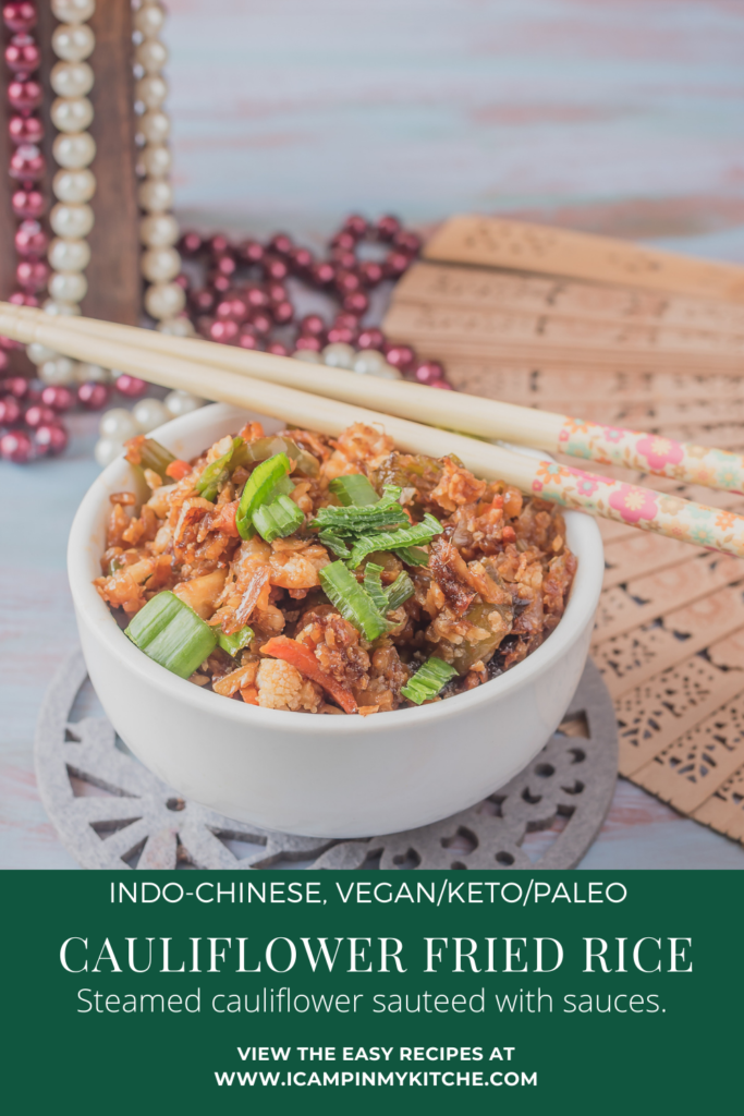 LOve this indo-chinese style fried rice using cauliflower. Such a delicious recipe for those who avoid carbs particularly keto / paleo diet friendly !
