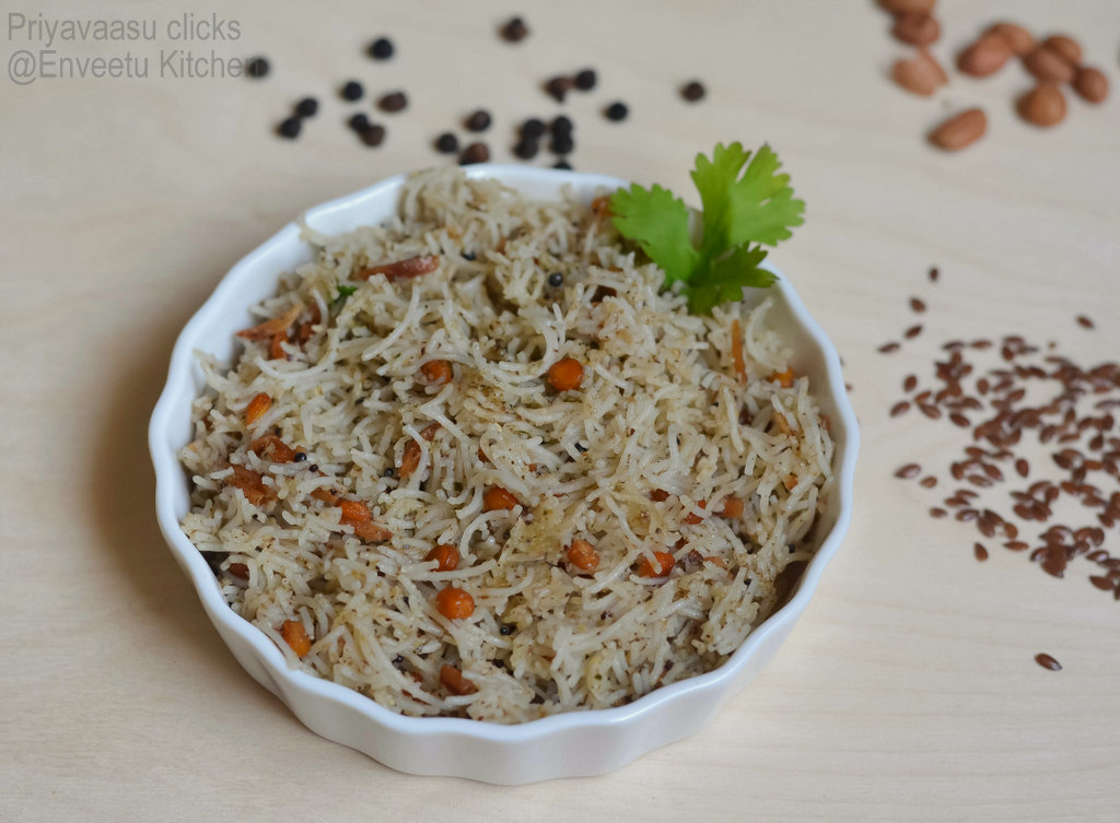 A super healthy twist for our regular sevai or rice noodles with pepper and flax seeds. The podi can be mixed and matched with other ingredients too. You can even add a tablespoon of coconut or even white sesame seeds. The spice powder can be made in advance and stored in the refrigerator to make this snack quick. Kuttu prefers this sevai with some yogurt, whereas the lil one haves it as such.