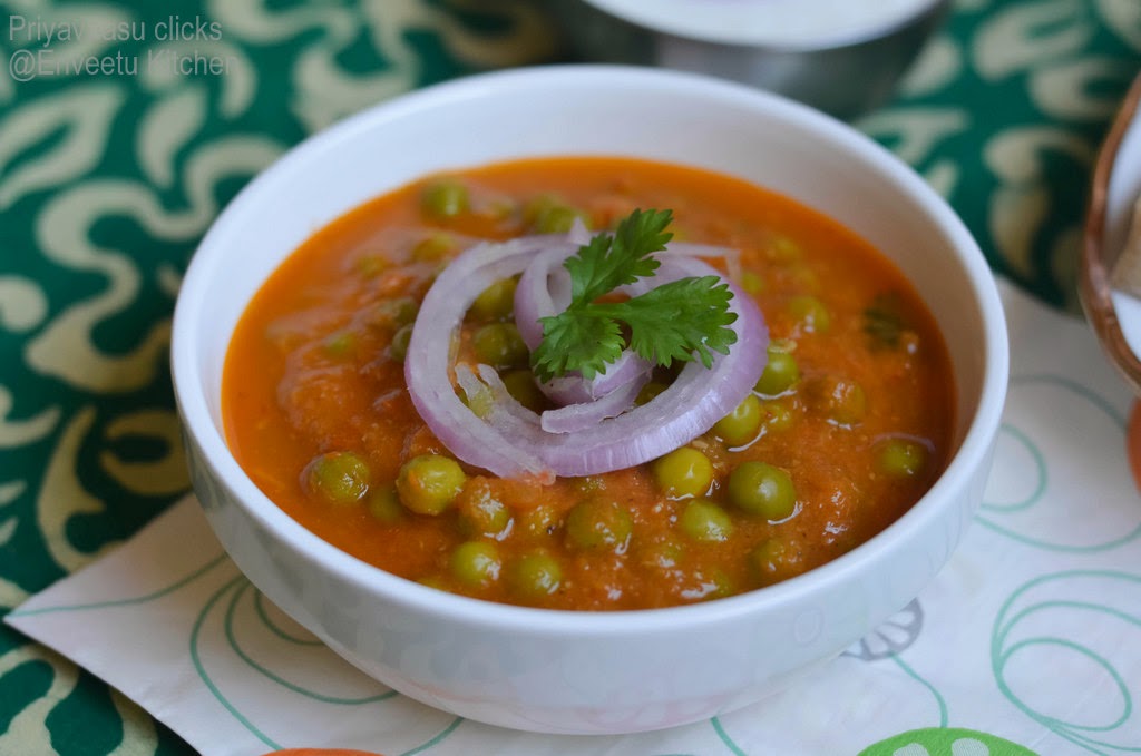 Serve this delicious green peas masala with soft roti's or serve it with steaming hot rice for a comforting meal.