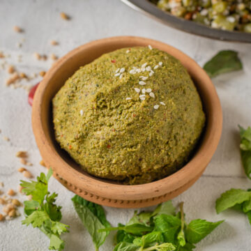 Coriander or kothamalli thogayal, is a flavorsome condiment made with fresh coriander leaves and lentils. I also add a handful of fresh mint leaves to enhance the flavor of the thogayal.