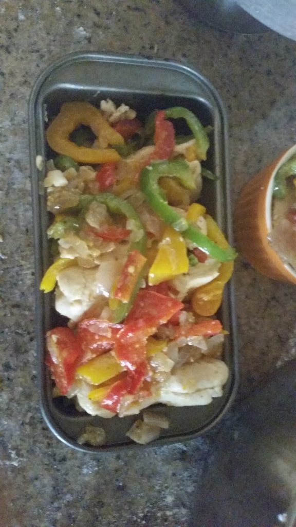- Next add the chopped peppers followed by red chili powder and coriander powder, pepper powder and salt. Cover and cook for 8 minutes, for the flavors to mingle. Remove the cover and let it sit for 5 minutes on the stove. Take it off the stove and let it cool completely before using it in the bread.