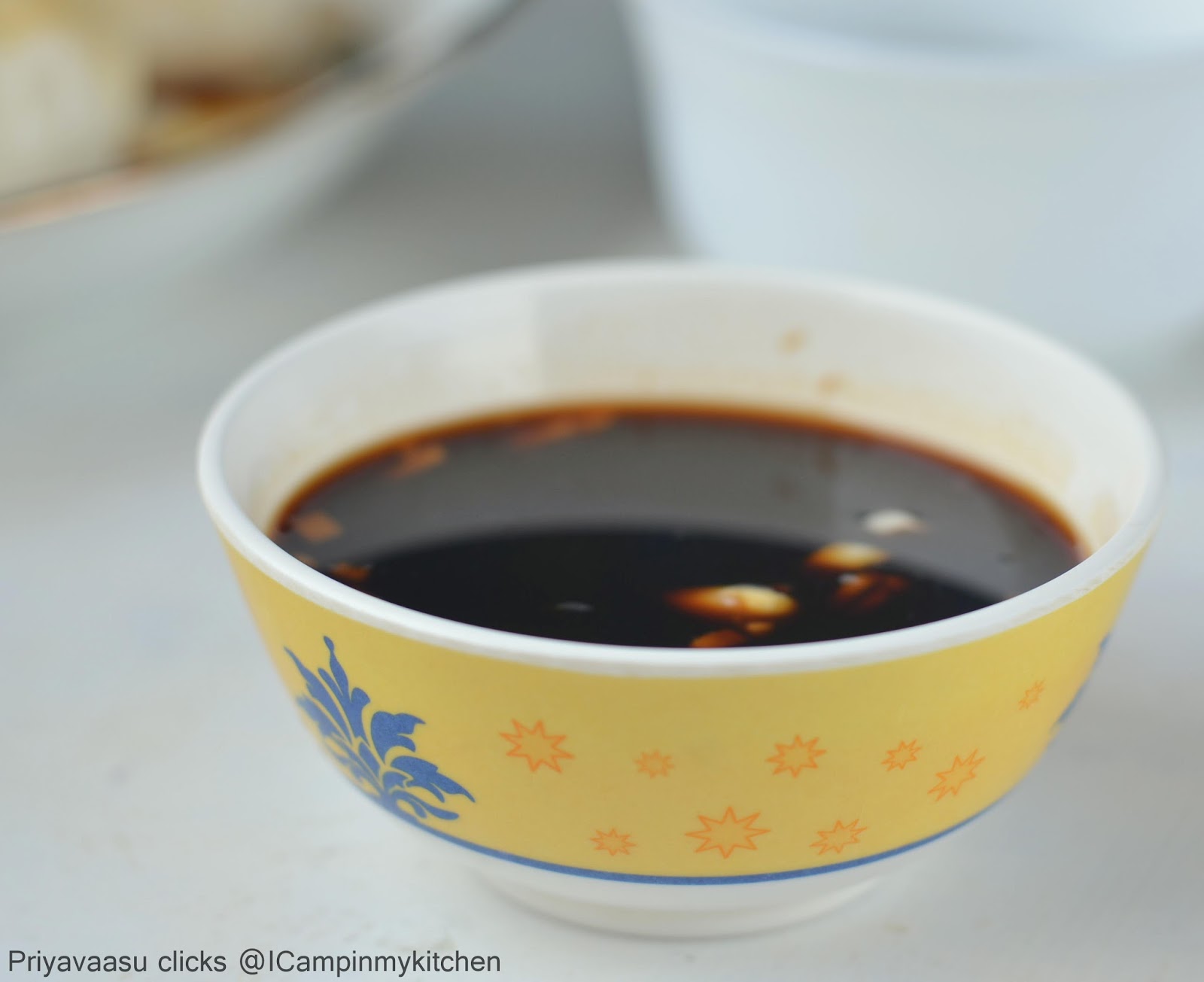 While making it though i was not sure of the taste, but then once made, i liked that tangy and spicy punch of it. It paired so well with the dumplings, along with onion oil.