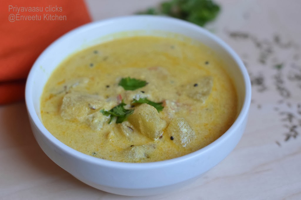 Today's post is in my draft for almost two weeks, planned to do it for BM#36, but had to pull out halfway, due to my health and other reasons. Morekuzhambhu/spiced yogurt gravy is my all-time favorite. Amma used to make it every saturday. I personally love it the next day, a bit more sour. This gravy can be made using bhindi/cola-cassia/brinjal.