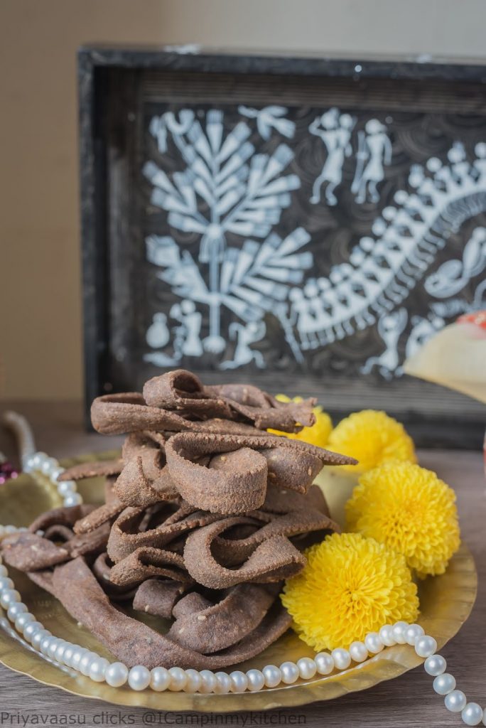 With Diwali tomorrow, how come, i end the week without a savory. So i decided to do a murukku using ragi flour. Ragi flour makes delicious snacks.I have made ladoos with ragi, and some years back I made ragi-moong dal murukku. When i picked the Millets theme, i decided to do a Diwali snack with ragi, here it a simple yet crunchy, munchy ribbon.