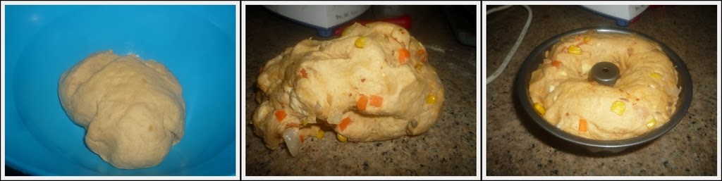 - Roll the dough into a longish log, long enough to fit into the mould comfortably. Lift the "log" of dough and place it in the mould in a circular fashion and pinch the two ends together to close the "circle" of dough. Cover and let the dough rise for about an hour or so, until it reaches the edge/ rim of the mould.